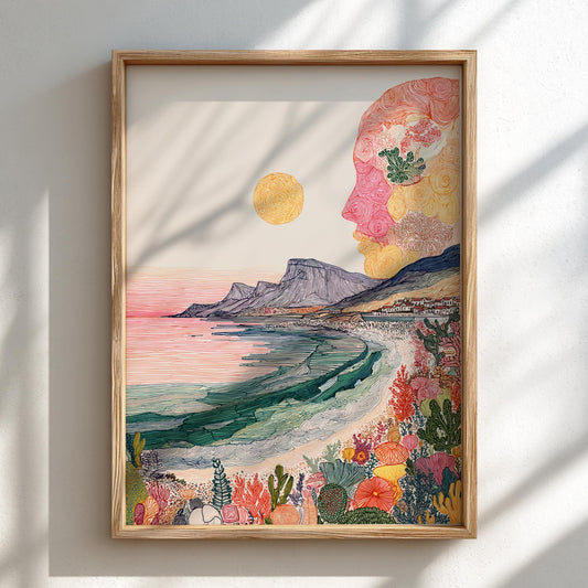 Whimsical Face – Surreal Sunset Ocean Art Print & Dreamy Nature Wall Decor