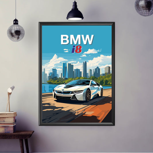 BMW i8 Poster – Modern Electric Hybrid BMW Car Wall Art Print