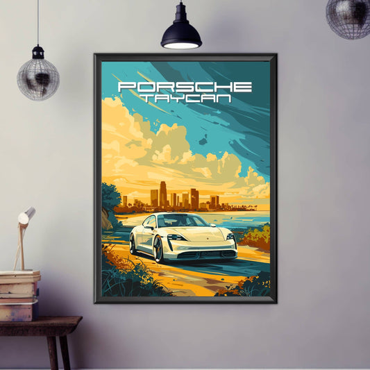 Porsche Taycan Poster – Modern Electric Porsche Car Wall Art Print