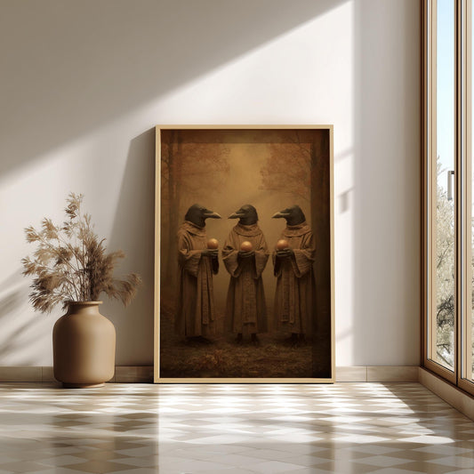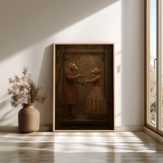 Gothic Animal Wedding Poster – Surreal Wolf-Headed Bride Wall Art