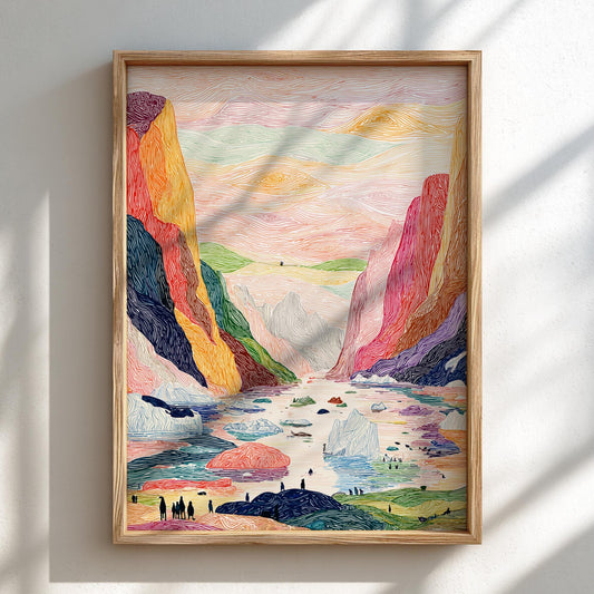 Fjords of Light – Pastel Fjord Landscape Art Print & Whimsical Nature Wall Decor