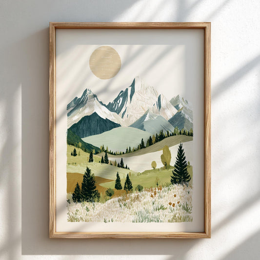 Alpine Whisper – Pastel Mountain Landscape Art Print & Serene Nature Wall Decor