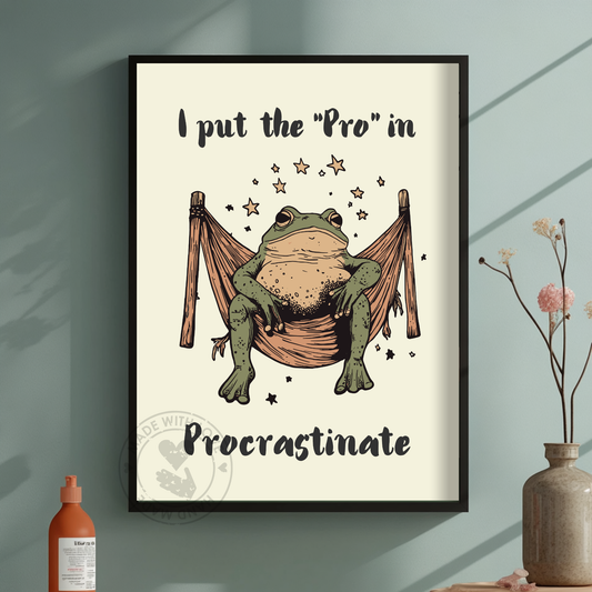 J'ai mis le pro dans la procrastination – Affiche drôle de grenouille