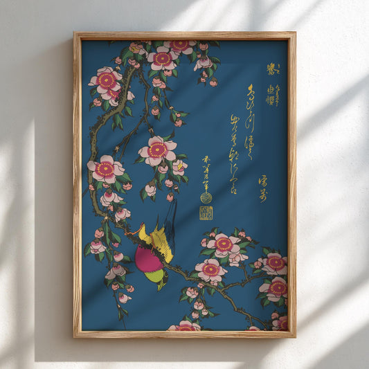 Bouvreuil et cerisier pleureur – Hokusai Uso Shidare-zakura Ukiyo-e Print