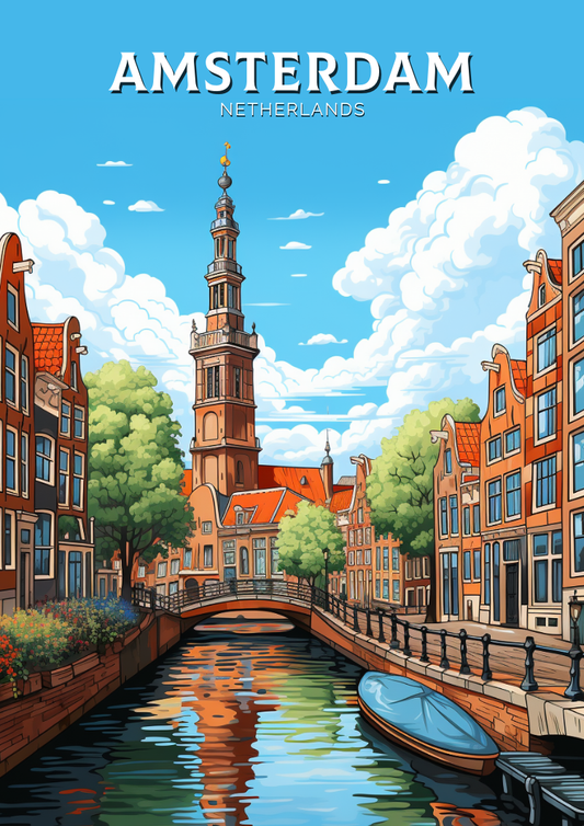 Affiche de voyage d'Amsterdam - Pays-Bas