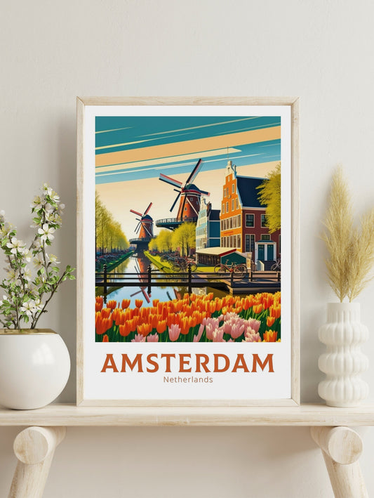 Décoration murale de voyage à Amsterdam - Affiche des Pays-Bas