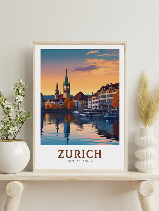 Affiche de voyage de Zurich - Illustration suisse
