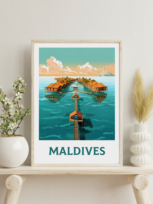 Affiche de voyage des Maldives - Œuvre d'art vintage