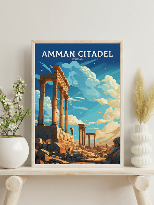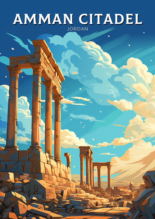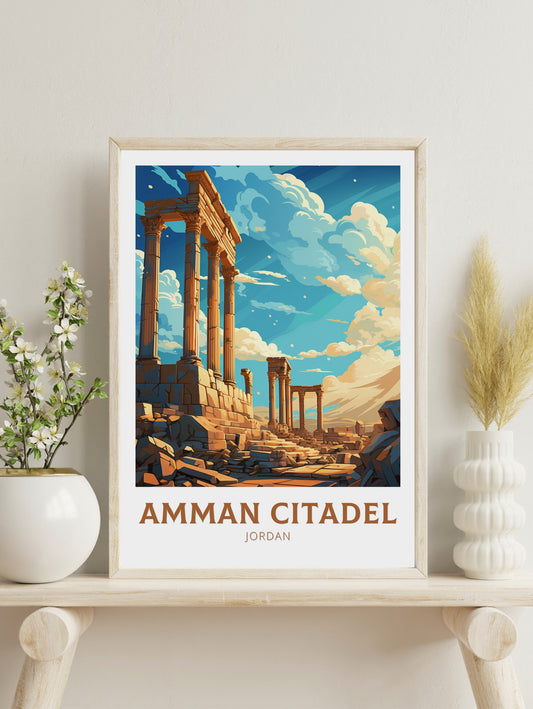 Affiche de voyage de la citadelle d'Amman - Art rétro jordanien