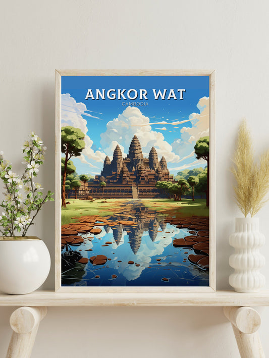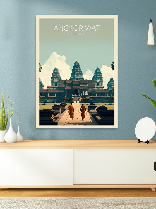 Affiche de voyage d'Angkor Wat - Art rétro du Cambodge