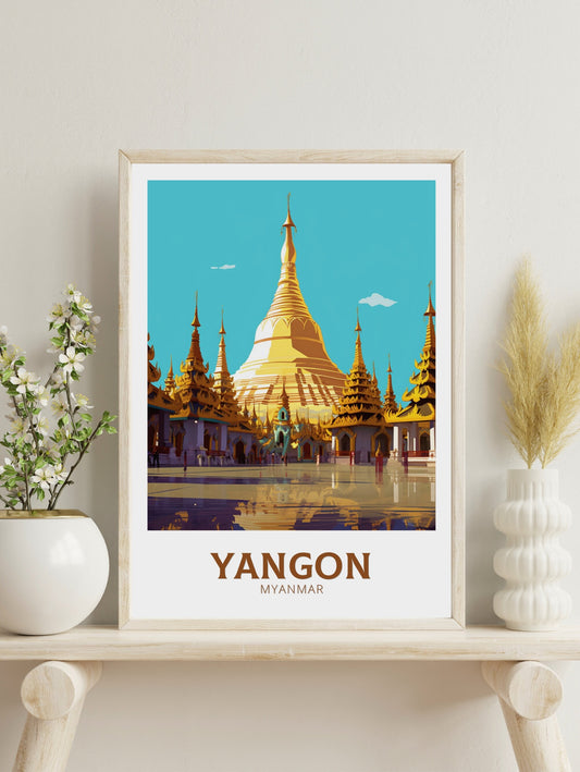 Affiche de voyage de Yangon - Art rétro du Myanmar