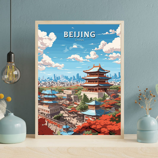 Affiche de voyage rétro de Pékin - Œuvre d'art vintage