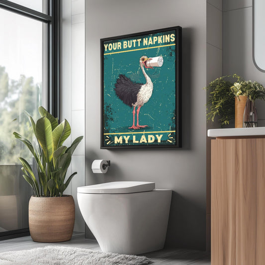 Œuvre d'art amusante pour la salle de bain - Affiche d'autruche