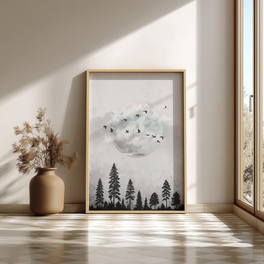 Décoration murale Forêt de Lune Blanche – Affiche Nature Minimaliste