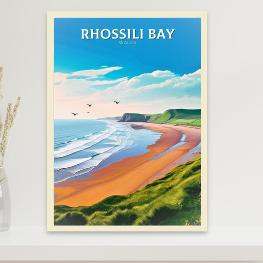 Impression de voyage de la baie de Rhossili - Œuvre d'art du Pays de Galles