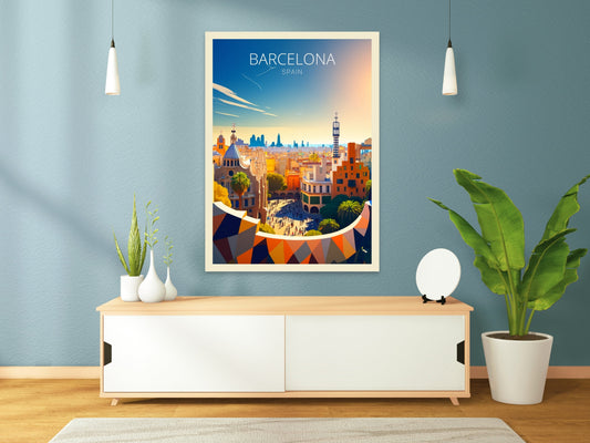Affiche de voyage de Barcelone - Œuvre d'art du parc Güell
