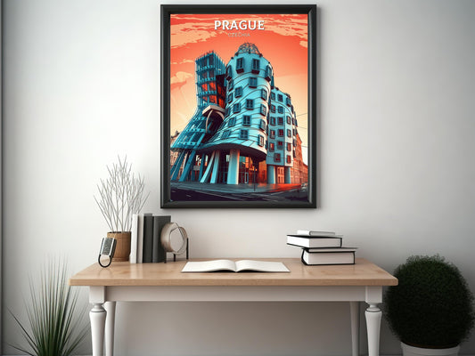 Affiche de voyage à Prague - Œuvre d'art de la Maison dansante