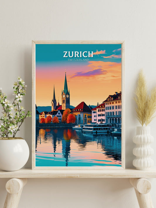 Affiche de voyage de Zurich - Illustration suisse