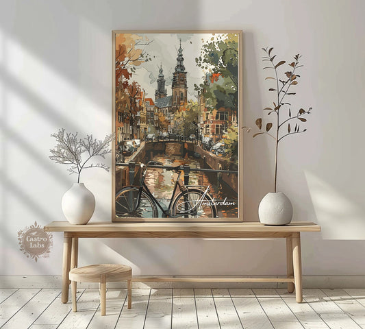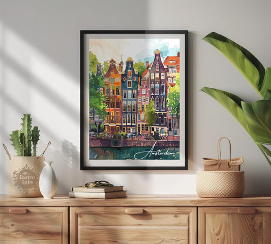 Affiche du canal d'Amsterdam - Aquarelle