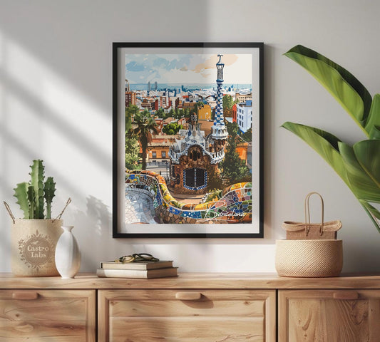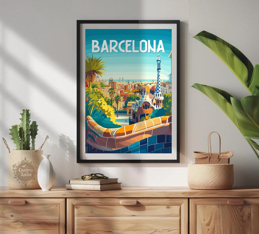 Affiche rétro Barcelone - Parc Güell