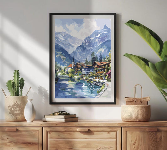 Affiche de voyage d'Interlaken - Illustration suisse