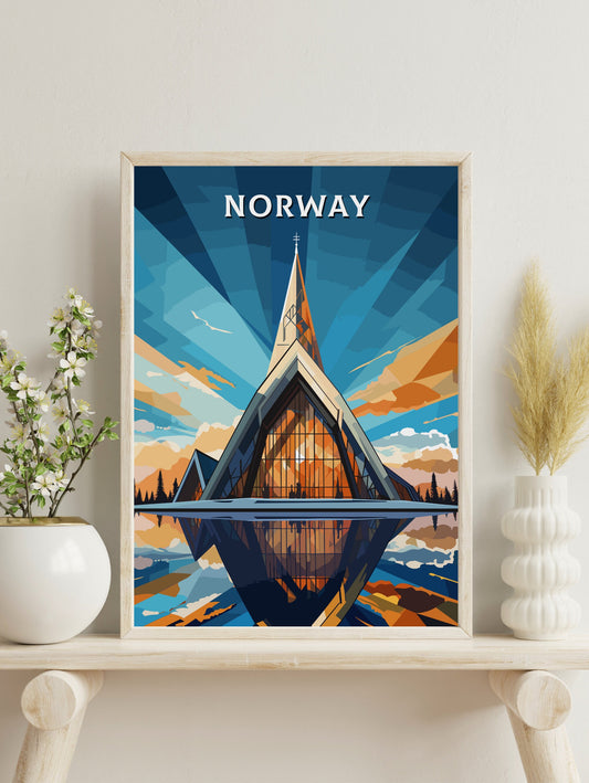 Affiche de voyage de la cathédrale arctique de Tromsø - Œuvre d'art norvégienne