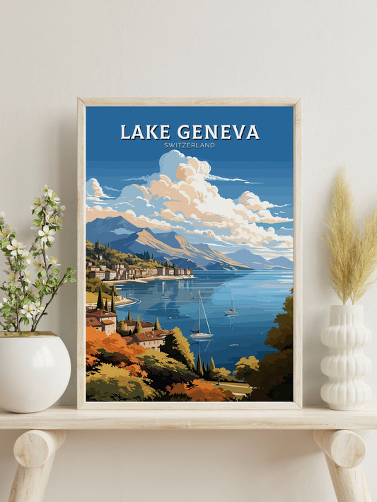 Affiche de voyage sur le lac Léman - Illustration suisse