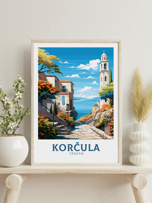Affiche de voyage de Korčula - Œuvre d'art de la Croatie