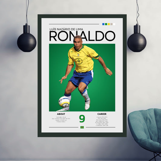 Ronaldo R9 Print - Illustration de football emblématique de Ronaldo Nazário