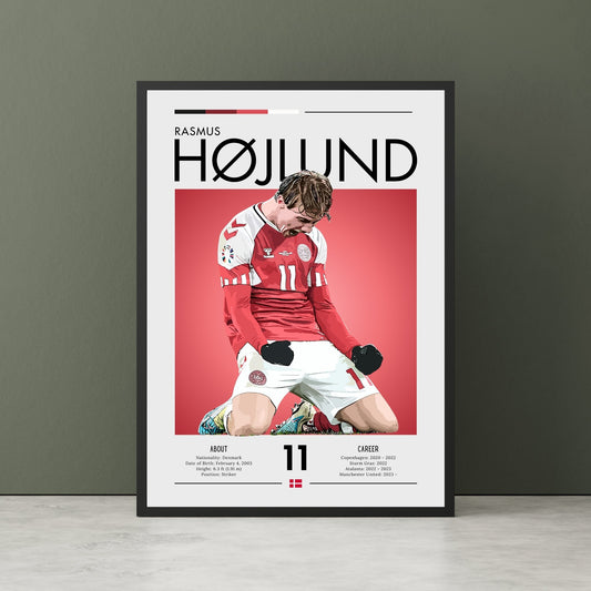 Rasmus Højlund Danemark Affiche - Rising Football Star Print