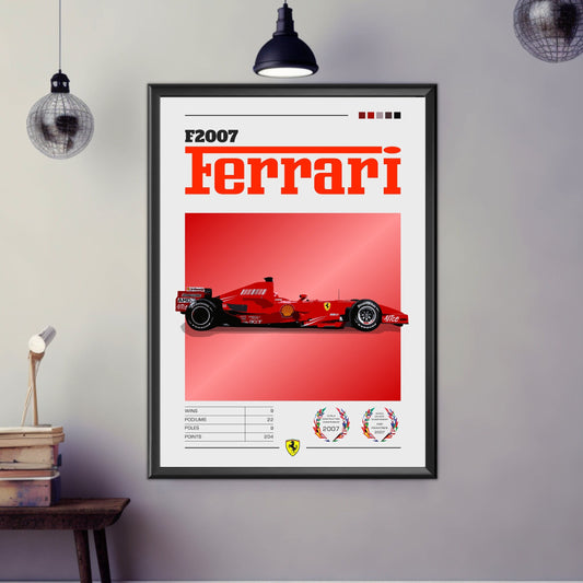 Affiche Ferrari F2007 – Décoration murale de la voiture championne de Formule 1 2007