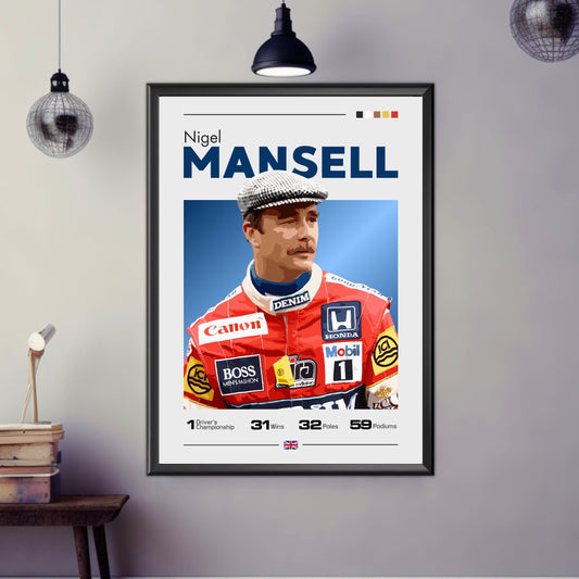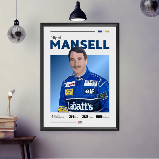 Affiche de Nigel Mansell – Champion du monde de F1 1992, légende britannique du sport automobile