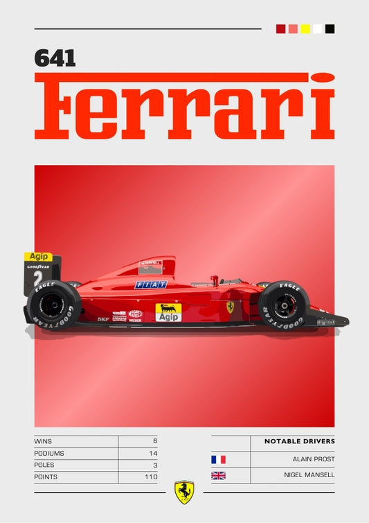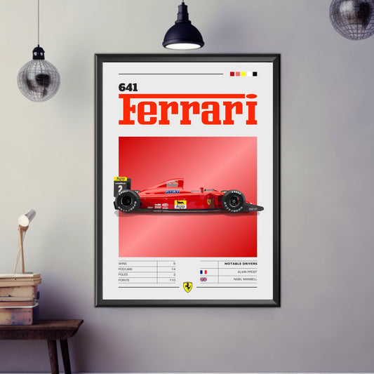 Affiche Ferrari 641 F1 – Décoration murale classique de Formule 1 des années 1990