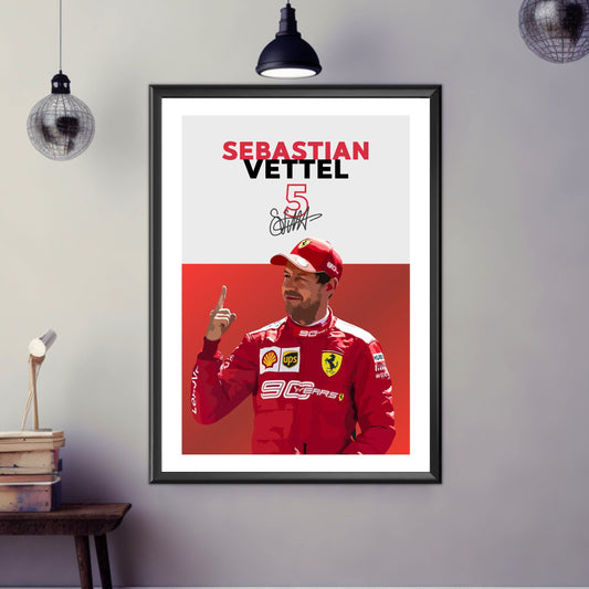 Affiche Ferrari F1 de Sebastian Vettel – Art mural légendaire de la Scuderia