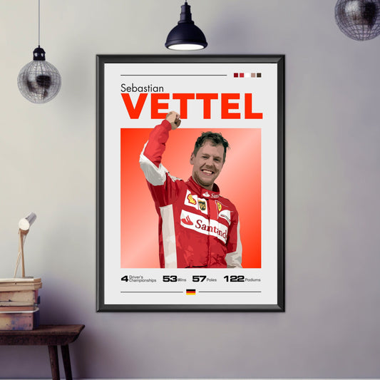Affiche Ferrari F1 de Sebastian Vettel – Art du quadruple champion