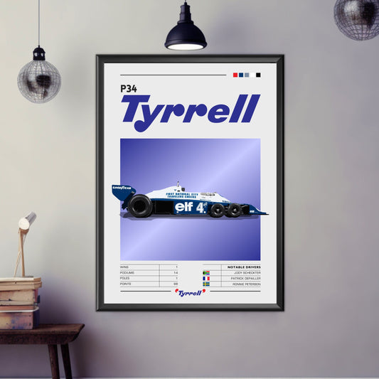 Affiche Tyrrell P34 F1 – Art emblématique du sport automobile à six roues