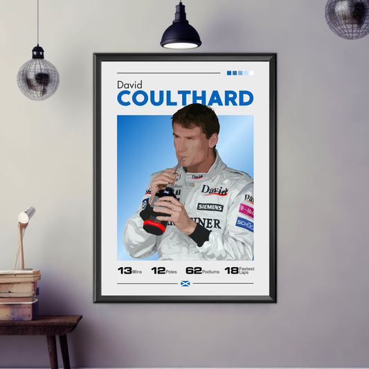Affiche F1 de David Coulthard – Art légendaire de McLaren et Red Bull Racing