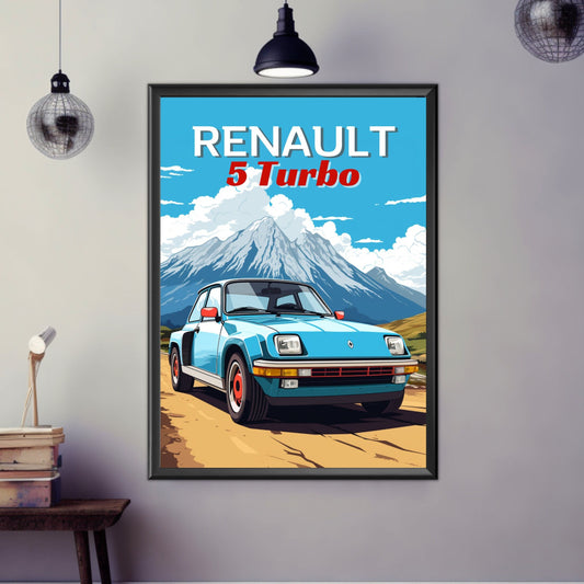 Affiche Renault 5 Turbo des années 1980 – Décoration murale vintage de rallye français