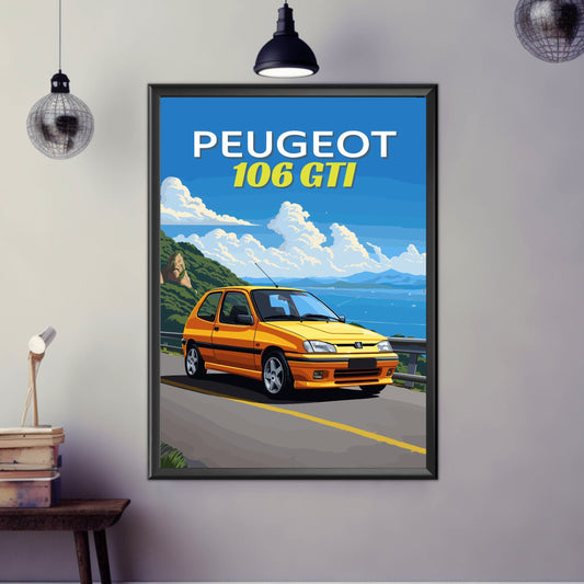 Affiche Peugeot 106 GTI des années 1990 – Décoration murale vintage française à hayon