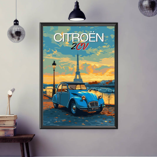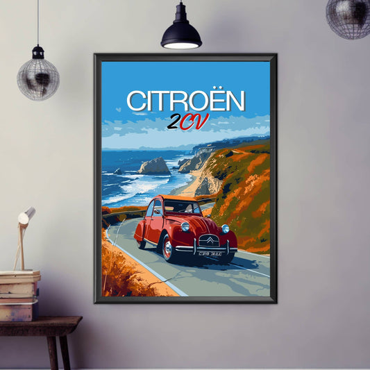 Affiche vintage Citroën 2CV des années 1950 – Impression d'art mural de voiture française classique