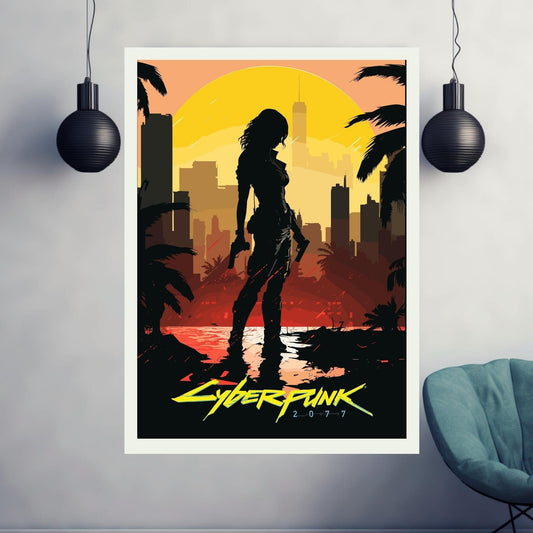 Affiche Cyberpunk 2077 – Art futuriste au néon pour les fans de Night City
