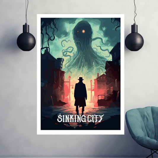 Affiche La Cité qui coule – Impression d'horreur lovecraftienne pour salles de jeux