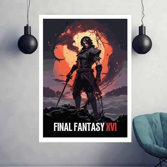 Affiche Final Fantasy XVI – Décoration murale épique de JRPG pour les joueurs de fantasy