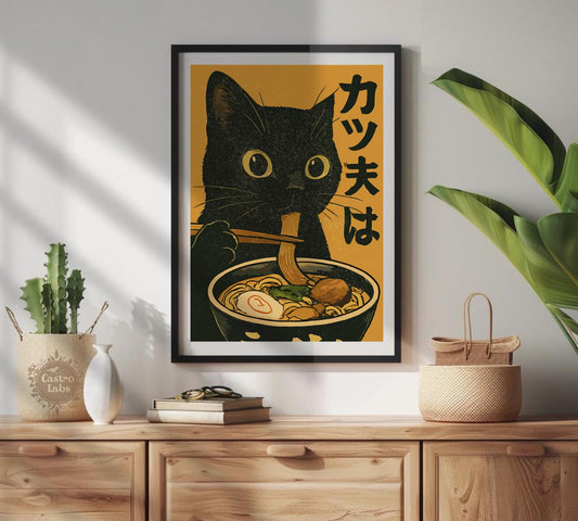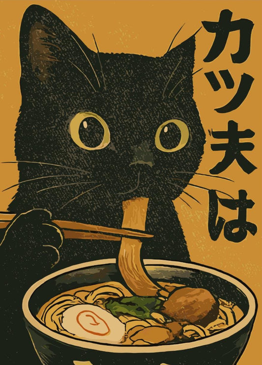 Affiche Chat Ramen – Impression d'art culinaire japonaise Ukiyo-e amusante pour les amoureux des chats