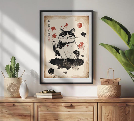 Affiche de chat japonais – Maneki Neko Impression artistique