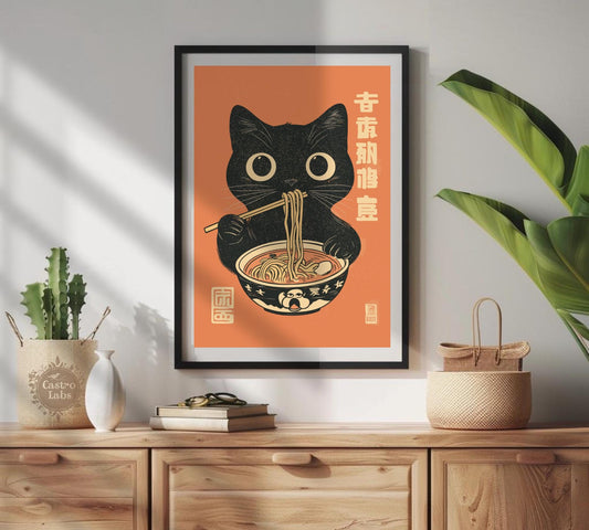 Décoration murale Kawaii Ramen Cat – Affiche de cuisine Black Cat