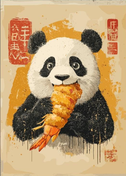 Affiche Panda Tempura - Imprimé animalier japonais vintage