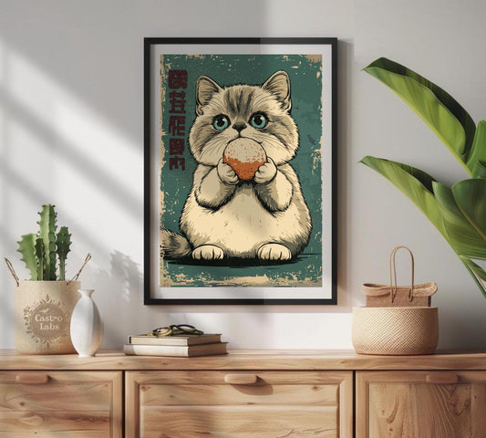 Affiche murale « Chat Slurpin' » - Affiche vintage japonaise pour chat