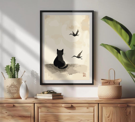 Affiche de chat à l'encre japonaise – Décoration murale de style oriental traditionnel