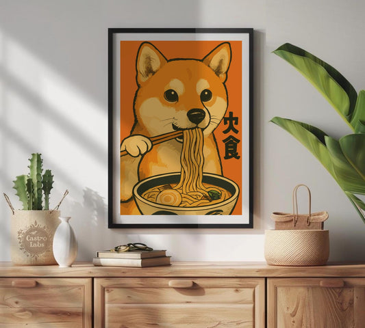 Affiche de ramen Shiba Inu – Décoration murale vintage pour cuisine japonaise